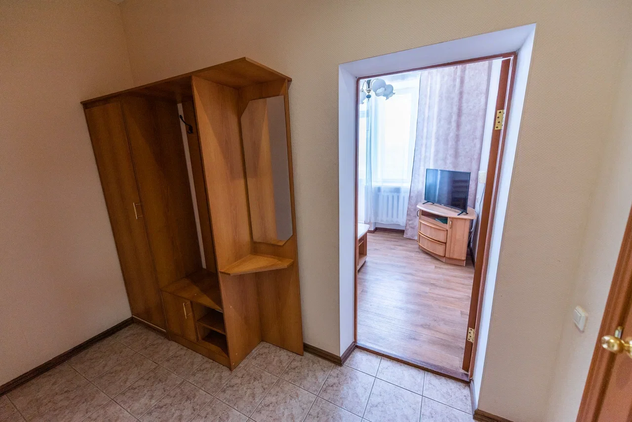 Оснащение номера: кровать двуспальная, прикроватная тумбочка, стол, стул, шкаф, телевизор, холодильник, чайный набор посуды, электрочайник